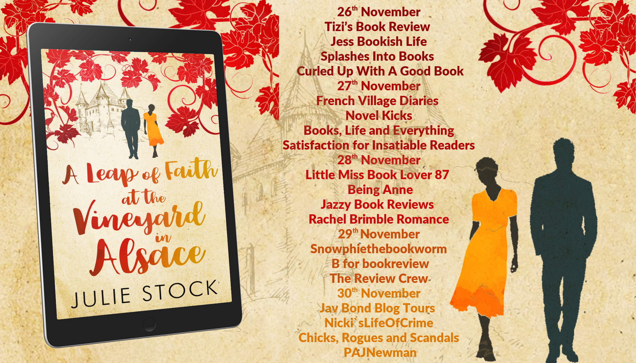Julie Stock writes contemporary feel-good romance from around the world: novels, novellas and short stories. She published her debut novel, From Here to Nashville, in 2015, after starting to write as an escape from the demands of her day job as a teacher. A Leap of Faith at the Vineyard in Alsace is her eleventh book, and the third in the Domaine des Montagnes series set on a vineyard.